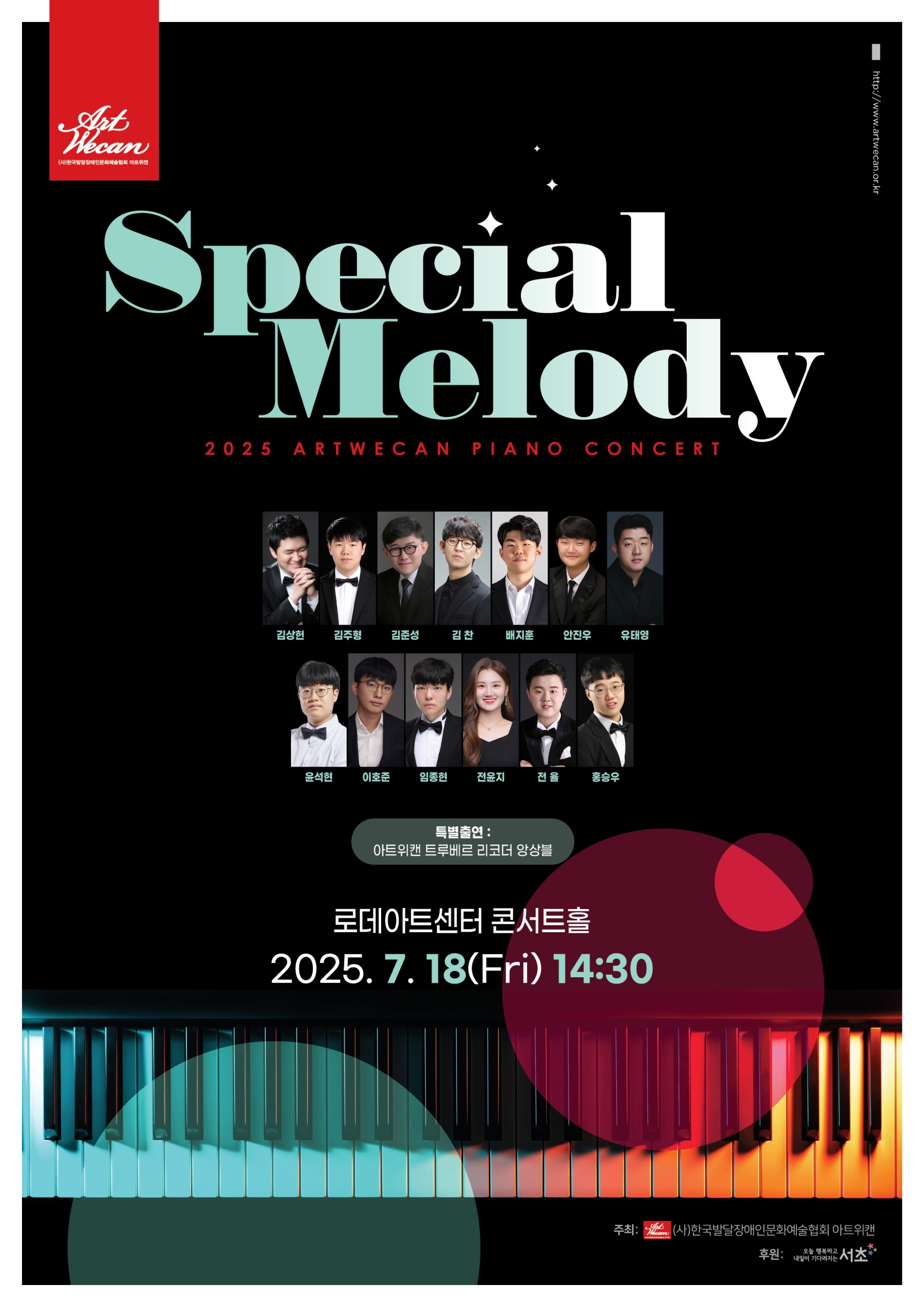 (»ç)Çѱ¹¹ß´ÞÀå¾ÖÀι®È¿¹¼úÇùȸ ¾ÆÆ®À§Äµ(ÀÌÇÏ ¾ÆÆ®À§Äµ, ´ëÇ¥ ¿Õ¼Ò¿µ)Àº 2025³â ¼Ãʱ¸ »çȸº¹Áö±â±Ý(Àå¾ÖÀκ¹Áö°èÁ¤) °ø¸ð»ç¾÷À¸·Î ¡®2025 ¾ÆÆ®À§Äµ ÇǾƳëÄܼƮ <½ºÆä¼È ¸á·Îµð(Special Melody)>¡¯¸¦ ¿À´Â 7¿ù 18ÀÏ(±Ý) ¿ÀÈÄ 2½Ã 30ºÐ ¼¿ï½Ã ¼Ãʱ¸¿¡ À§Ä¡ÇÑ ·Îµ¥¾ÆÆ®¼¾ÅÍ ÄܼƮȦ¿¡¼ °³ÃÖÇÑ´Ù.