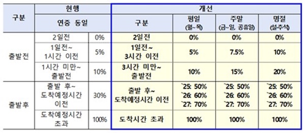 [¾ÆÀ¯°æÁ¦=¹Úâ¿í ±âÀÚ] ¿À´Â 5¿ùºÎÅÍ °í¼Ó¹ö½º ½ÂÂ÷±Ç Ãë¼Ò ¼ö¼ö·áÀ²ÀÌ ÃÖ´ë 20% ÀλóµÈ´Ù. ÀÌ´Þ 18ÀÏ ±¹Åä±³ÅëºÎ´Â ¿ÃÇØ 5¿ù 1ÀϺÎÅÍ ±Ý¿äÀÏÀ» Æ÷ÇÔÇÑ ÁÖ¸»°ú °øÈÞÀÏ °í¼Ó¹ö½º Ãâ¹ß Àü Ãë¼Ò ¼ö¼ö·á¸¦ ±âÁ¸ ÃÖ´ë 10%¿¡¼­ 15%·Î ³ôÀÎ´Ù°í ¹àÇû´Ù. ¼³¤ýÃß¼® ¸íÀý ¼ö¼ö·á´Â 20%·Î »óÇâÇÑ´Ù. ÇöÀç´Â 10% Ãë¼Ò ¼ö¼ö·áÀ²À» Àû¿ëÇϰí Àִµ¥, ½Â°´ÀÌ ¸¹Àº ³¯¿¡´Â ¼ö¼ö·á¸¦ ´õ ³ôÀÌ´Â ¹æ½ÄÀ¸·Î °³ÆíÇÏ´Â °ÍÀÌ´Ù. Ãâ¹ß Àü ÃÖ´ë ¼ö¼ö·á°¡ ºÎ°úµÇ´Â ½Ã°£µµ ÇöÀçÀÇ `Ãâ¹ß 1½Ã°£ ÀüºÎ...