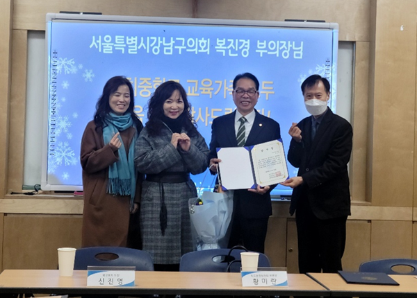 [¾ÆÀ¯°æÁ¦=Á¶Çö¿ì ±âÀÚ] °­³²±¸ÀÇȸ º¹Áø°æ ºÎÀÇÀå(»ï¼º1¤ý2µ¿¤ý´ëÄ¡2µ¿)ÀÌ Áö³­ 23ÀÏ ´ëÄ¡ÁßÇб³Àå°ú Çкθðȸ, Çб³¿î¿µÀ§¿øÈ¸°¡ °øµ¿À¸·Î ¼ö¿©ÇÏ´Â °¨»çÀåÀ» ¹Þ¾Ò´Ù. ´ëÄ¡ÁßÇб³ÀÇ ±³À°°øµ¿Ã¼´Â º¹Áø°æ ºÎÀÇÀåÀÌ ±×µ¿¾È ÇлýµéÀÇ ¾ÈÀüÇϰí ÄèÀûÇÑ ±³À°È¯°æ °³¼± ¹× Çб³ ¹ßÀüÀ» À§ÇÑ ³ë·Â°ú Áö¿ø¿¡ °¨»çÇÏ´Â Àǹ̸¦ ´ã¾Ò´Ù°í ¹àÇû´Ù. º¹Áø°æ ºÎÀÇÀåÀº ´ëÄ¡ÁßÇб³ÀÇ °íÁúÀûÀÎ ¹®Á¦ÀÎ ¼ÒÀ½°ú ¿îµ¿Àå °³¼±À» À§ÇØ °ü½ÉÀ» °®°í ÈûÀ» ½ñ¾Æ¿Ô´Ù. º¹ ºÎÀÇÀåÀº "¿ì¸® ±¸¿¡ Áß...